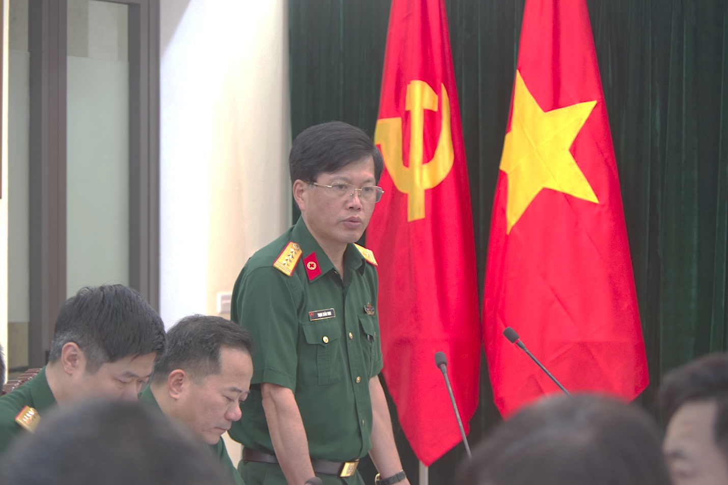 Đại tá Hoàng Văn Lý - Giám đốc Bệnh viện Quân y 7 phát biểu tại Hội nghị