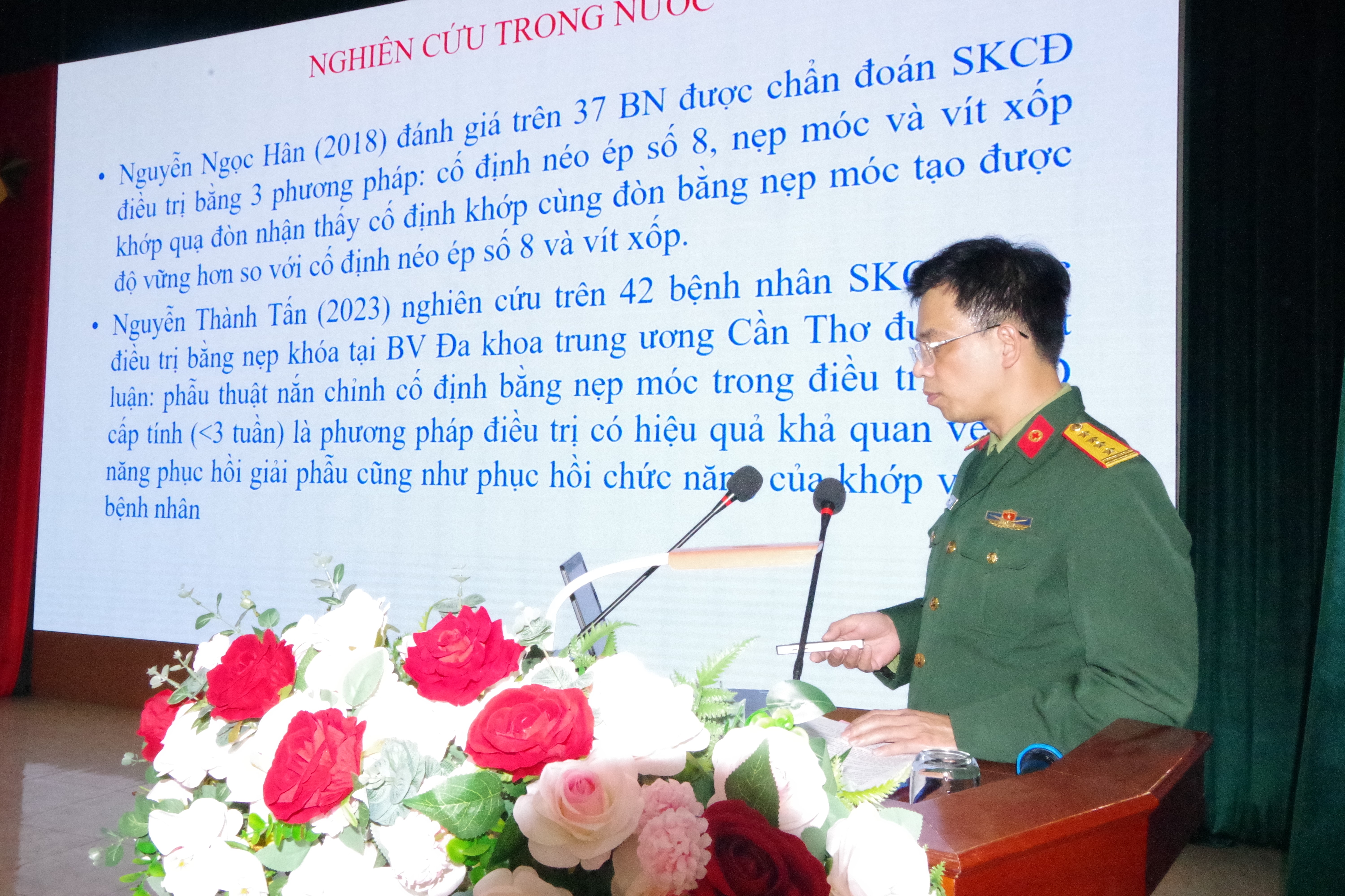 Tại hội nghị đã nghiệm thu đề tài NCKH cấp Quân khu năm 2025: “Đánh giá kết quả điều trị phẫu thuật sai khớp cùng đòn bằng nẹp móc tại Bệnh viện Quân y 7, Cục Hậu cần - Kỹ thuật Quân khu 3” do Đại tá, BSCKII Lê Văn Huy, Chủ nhiệm Khoa Chấn thương chỉnh hình báo cáo. Đề tài đã được Hội đồng Khoa học và Công nghệ Quân khu đánh giá cao về tính ứng dụng thực tiễn, góp phần nâng cao hiệu quả điều trị chấn thương chỉnh hình trong Quân đội.