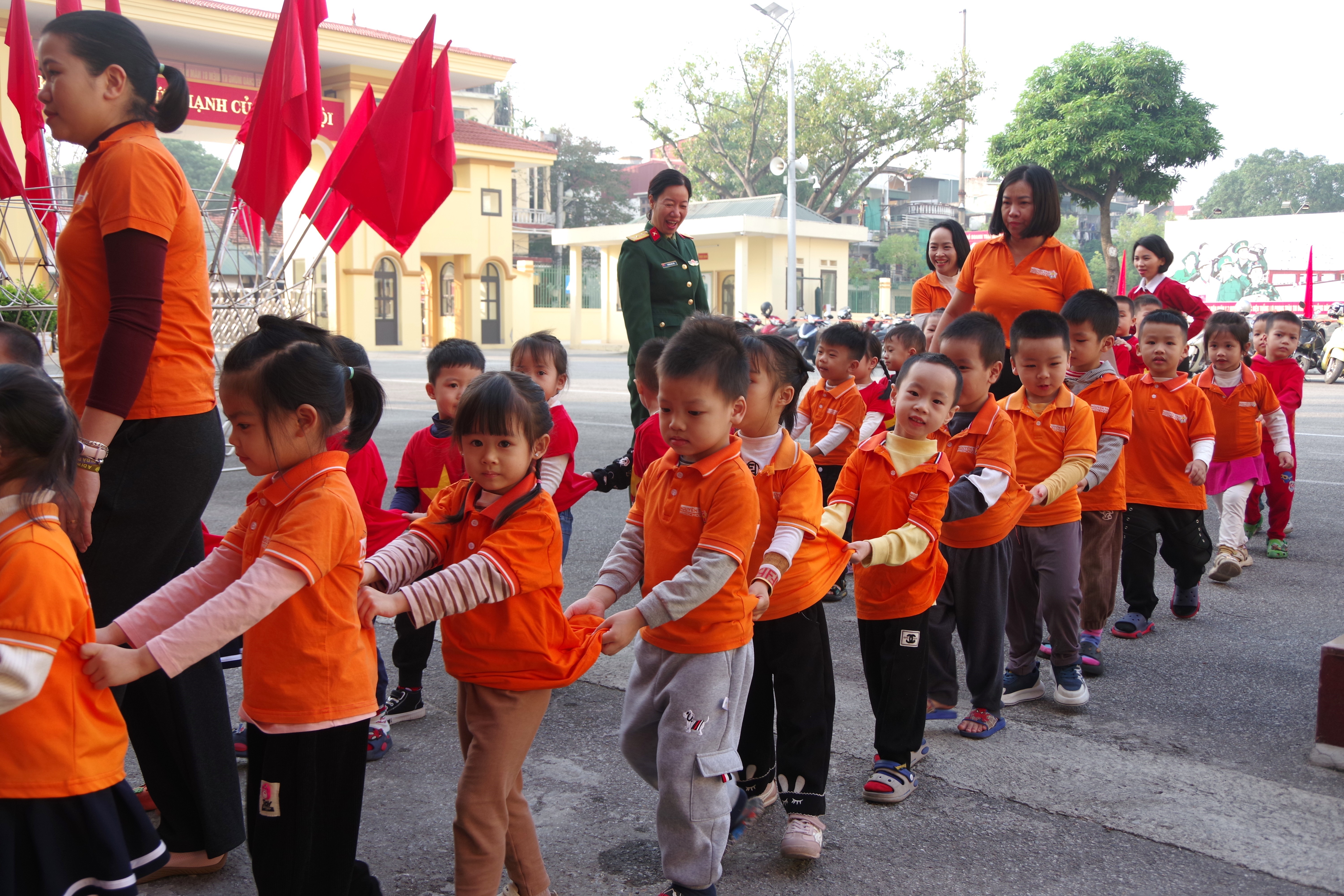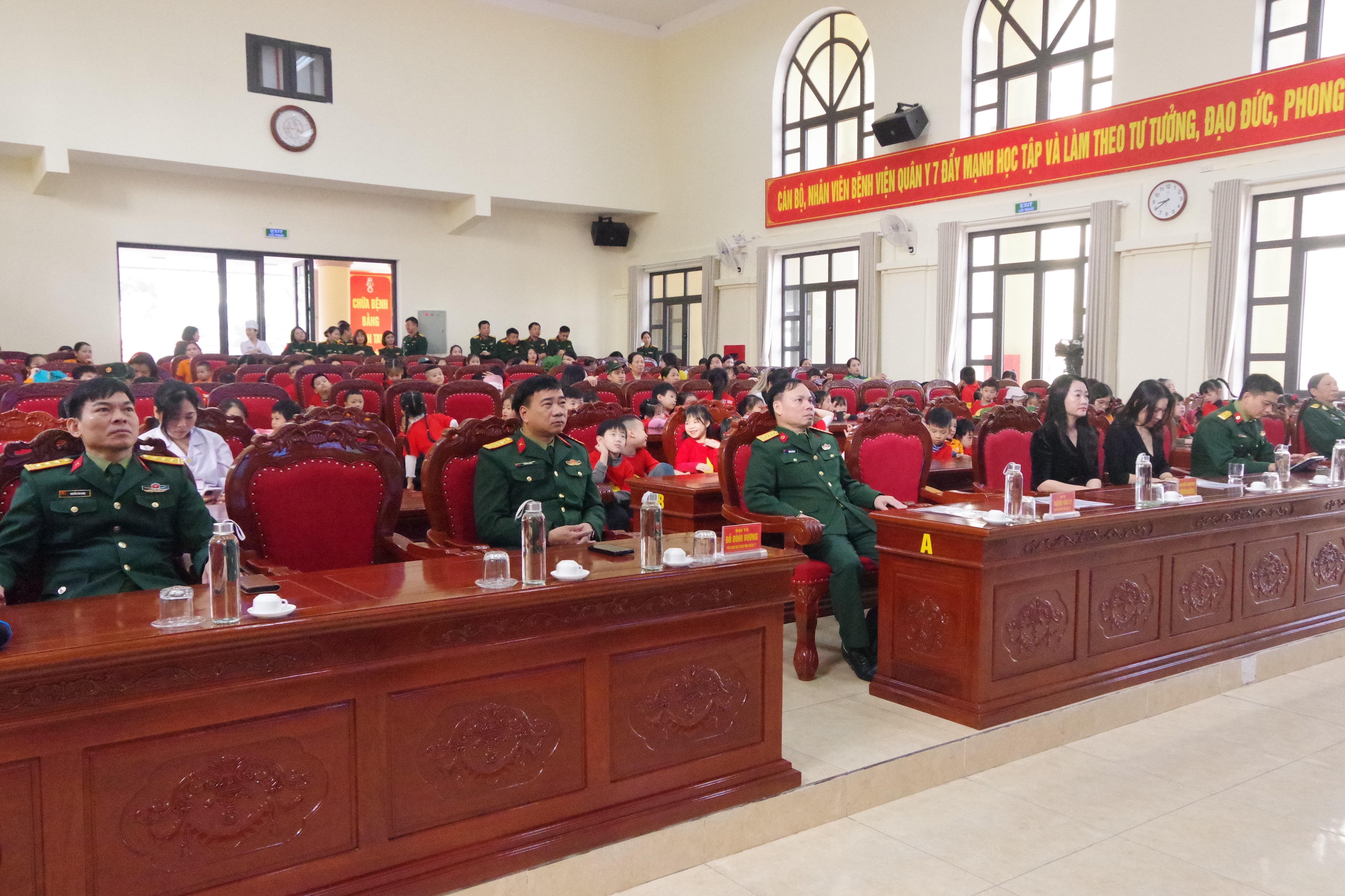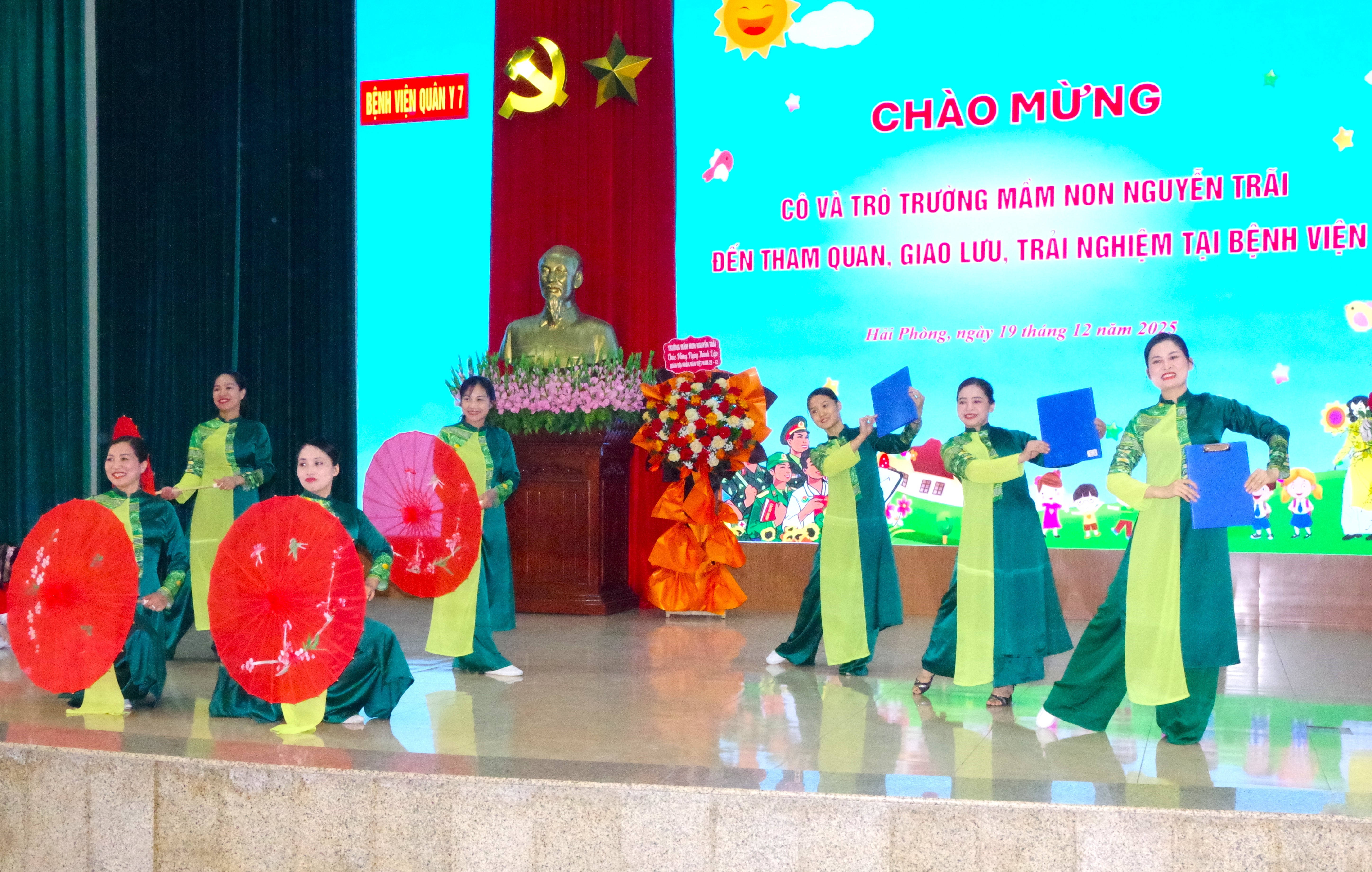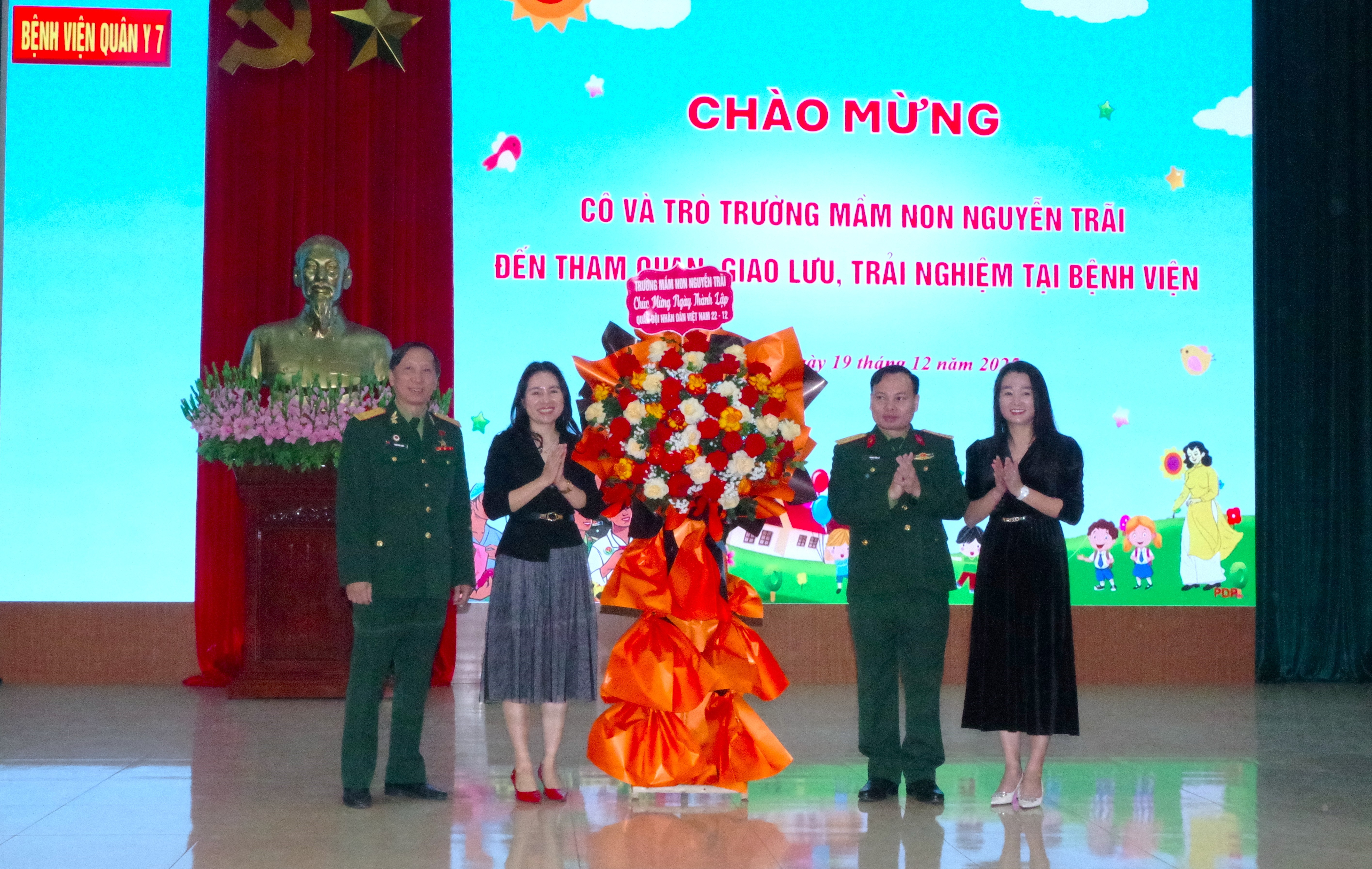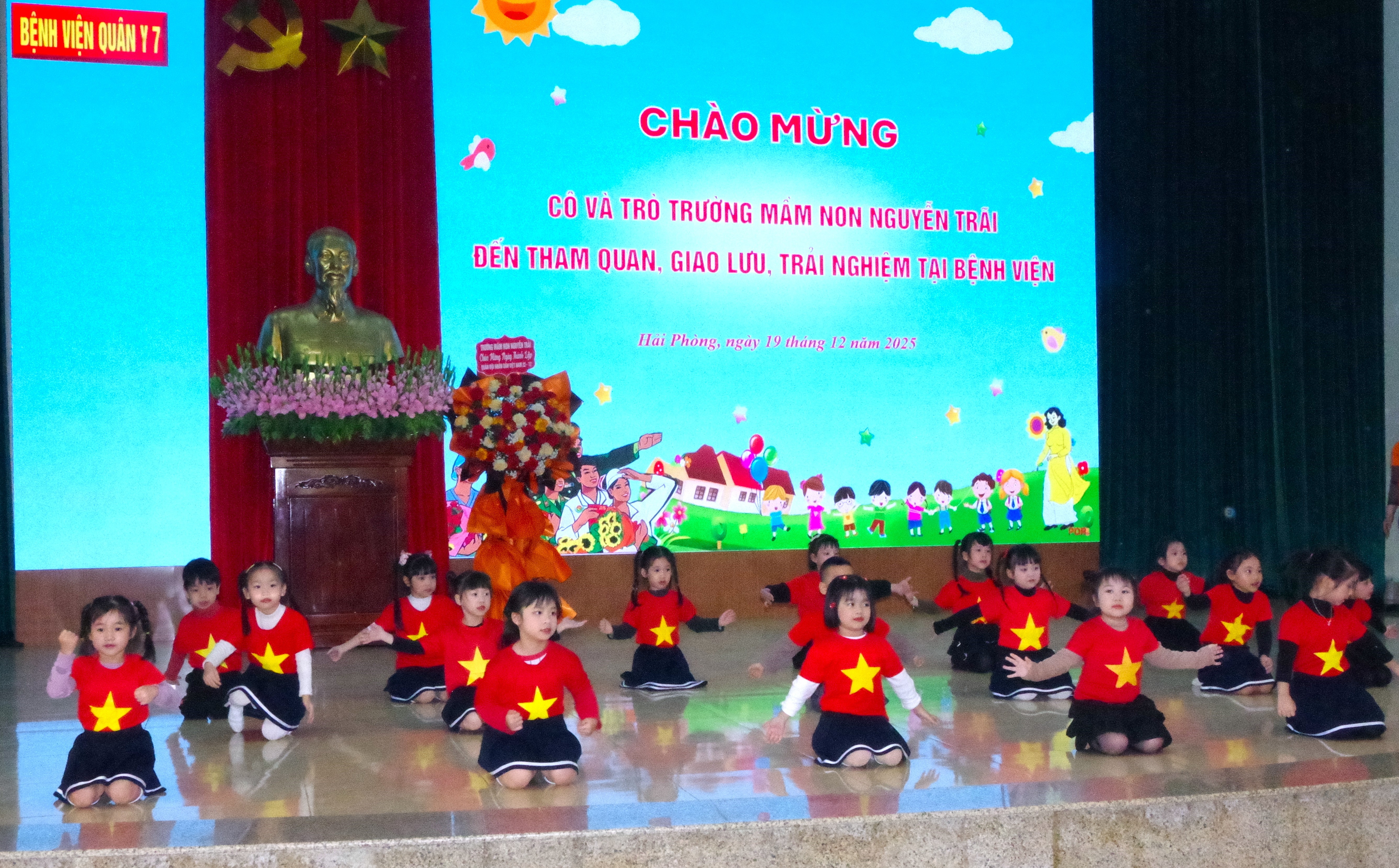 Sáng ngày 19/12/2025, Bệnh viện Quân y 7 (Cục Hậu cần - Kỹ thuật Quân khu 3) phối hợp với Trường Mầm nom Nguyễn Trãi (P. Thành Đông, TP. Hải Phòng) tổ chức buổi tham quan, giao lưu và trải nghiệm đầy thú vị tại đơn vị. Ngay từ sáng sớm, các cháu học sinh trong trang phục gọn gàng, khuôn mặt rạng rỡ đã được các cô giáo hướng dẫn đến tham quan đơn vị. Sự đón tiếp nồng hậu, chu đáo của cán bộ, nhân viên, chiến sĩ bệnh viện đã để lại ấn tượng sâu sắc, tạo cảm giác thân thiện, gần gũi cho các cháu nhỏ.