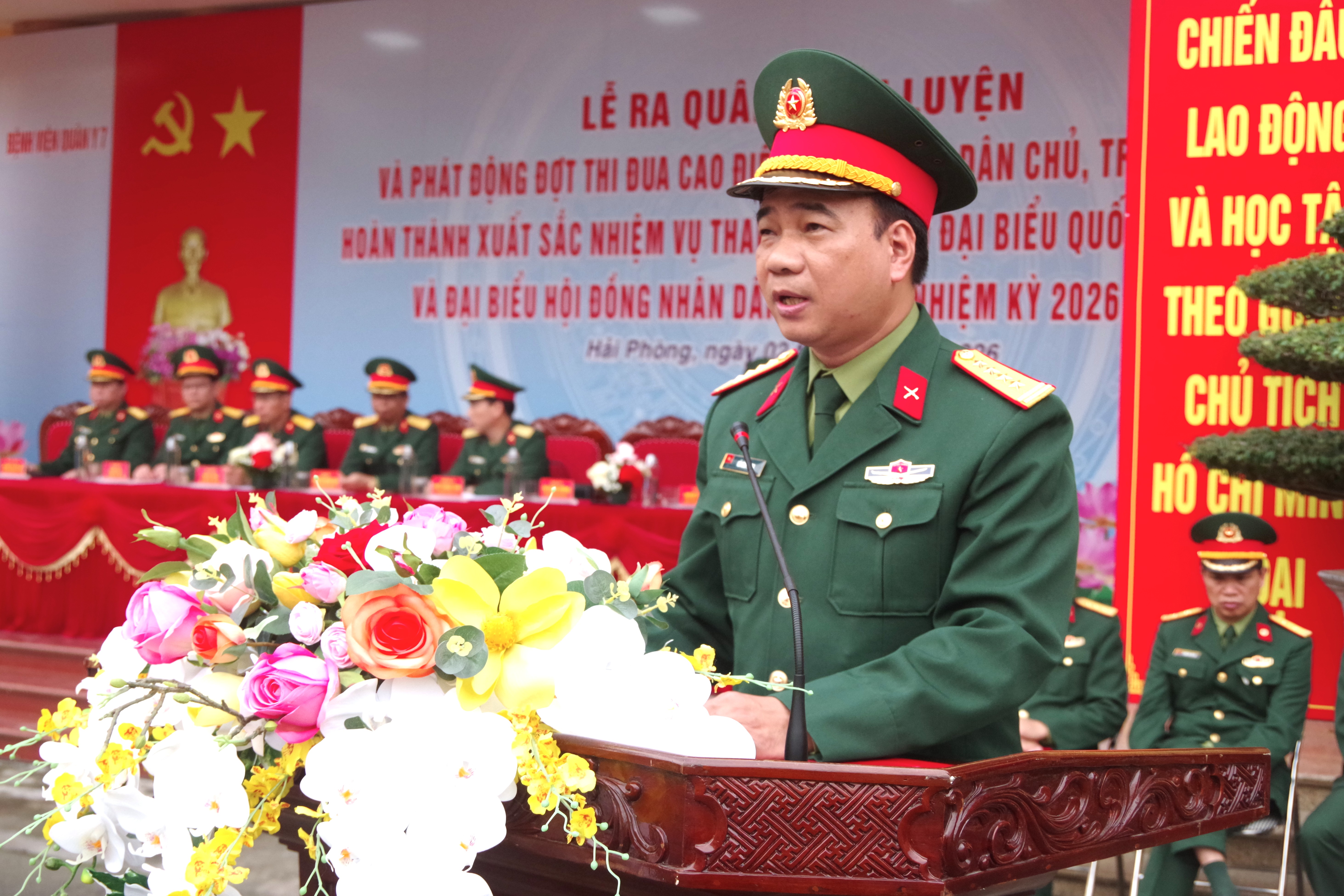 Đồng chí Đại tá Đỗ Đình Vương - Bí thư Đảng ủy, Phó Giám đốc Bệnh viện Quân y 7 phát động đợt thi đua cao điểm