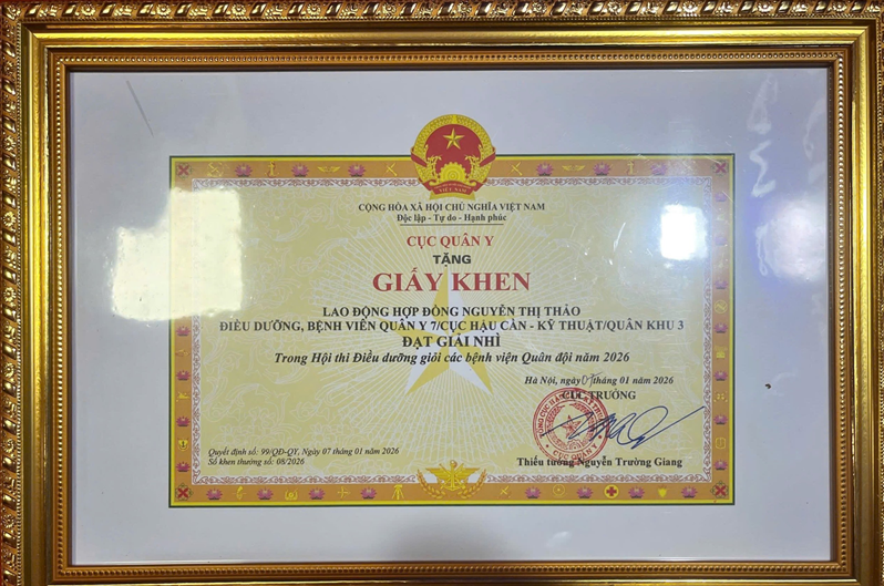 Tại Lễ bế mạc Hội thi ngày 08/01/2026, Ban Tổ chức đã tổng kết và trao giải cho các tập thể, cá nhân đạt thành tích xuất sắc. Bệnh viện Quân y 7 vinh dự đạt Giải Nhất toàn đoàn, được Cục Quân y tặng Giấy khen. Đặc biệt, thí sinh Nguyễn Thị Nhung đạt Giải Nhất cá nhân, được Hiệp hội Điều dưỡng Việt Nam trao Bằng khen dành cho thí sinh có thành tích xuất sắc tại Hội thi, thí sinh Nguyễn Thị Thảo đạt giải nhì cá nhân, được Cục Quân y tặng Giấy khen.