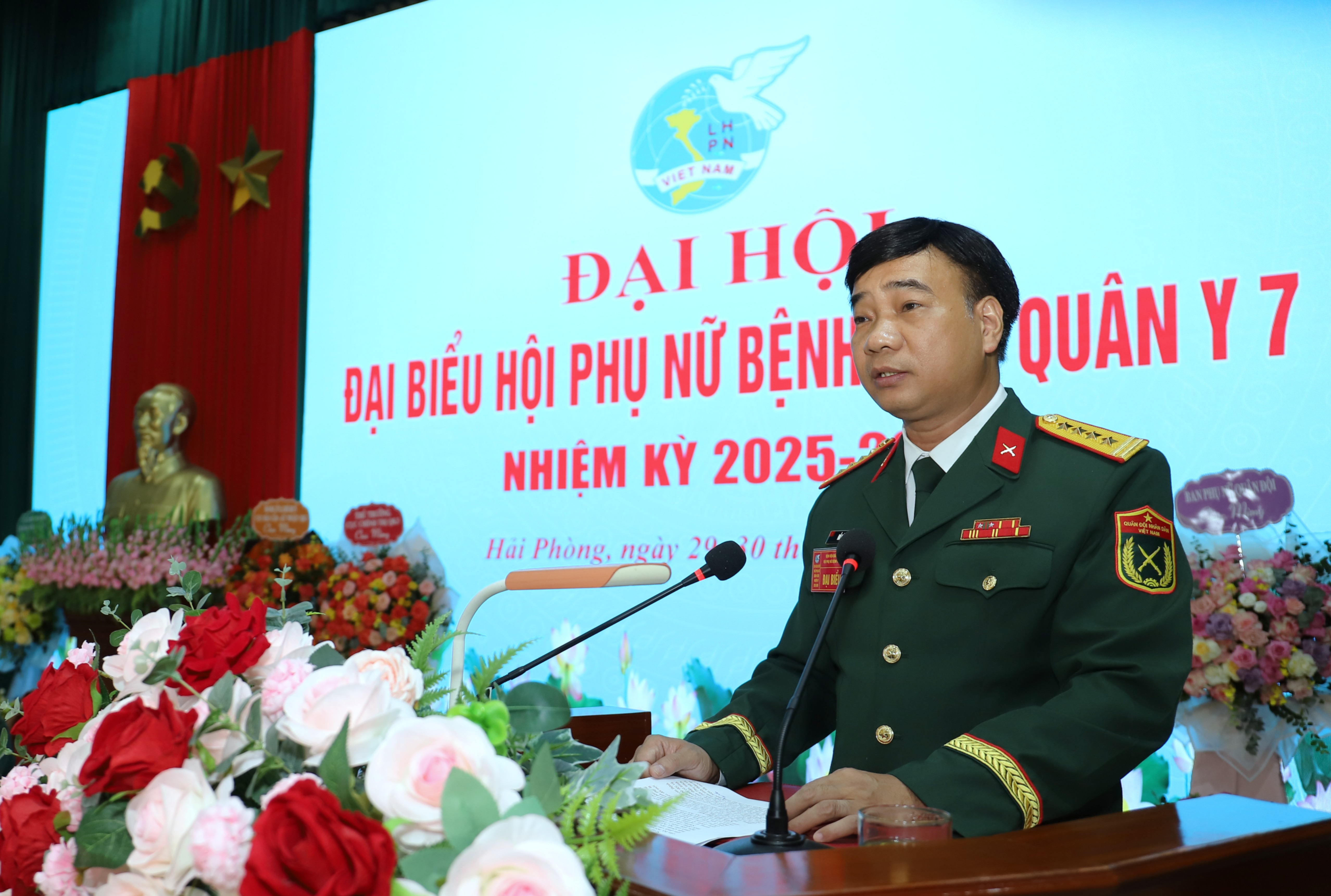 Thủ trưởng Cục Chính trị Quân khu 3, thủ trưởng Cục Hậu cần - Kỹ thuật Quân khu và các đại biểu chúc mừng thành công của Đại hội đại biểu Hội Phụ nữ cơ sở Bệnh viện Quân y 7 nhiệm kỳ 2025 - 2030