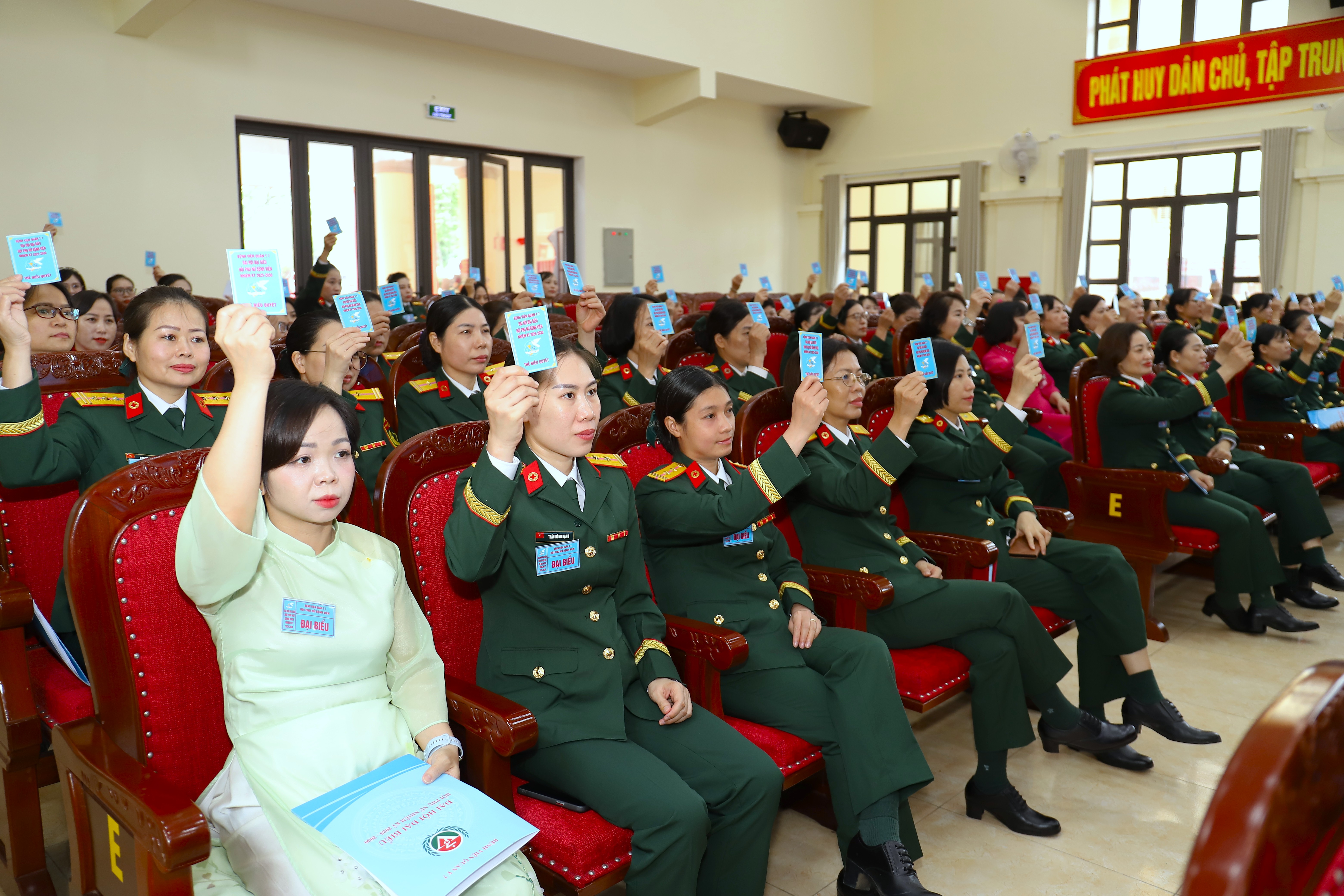 Đại biểu Đại hội Hội Phụ nữ cơ sở Bệnh viện Quân y 7 biểu quyết