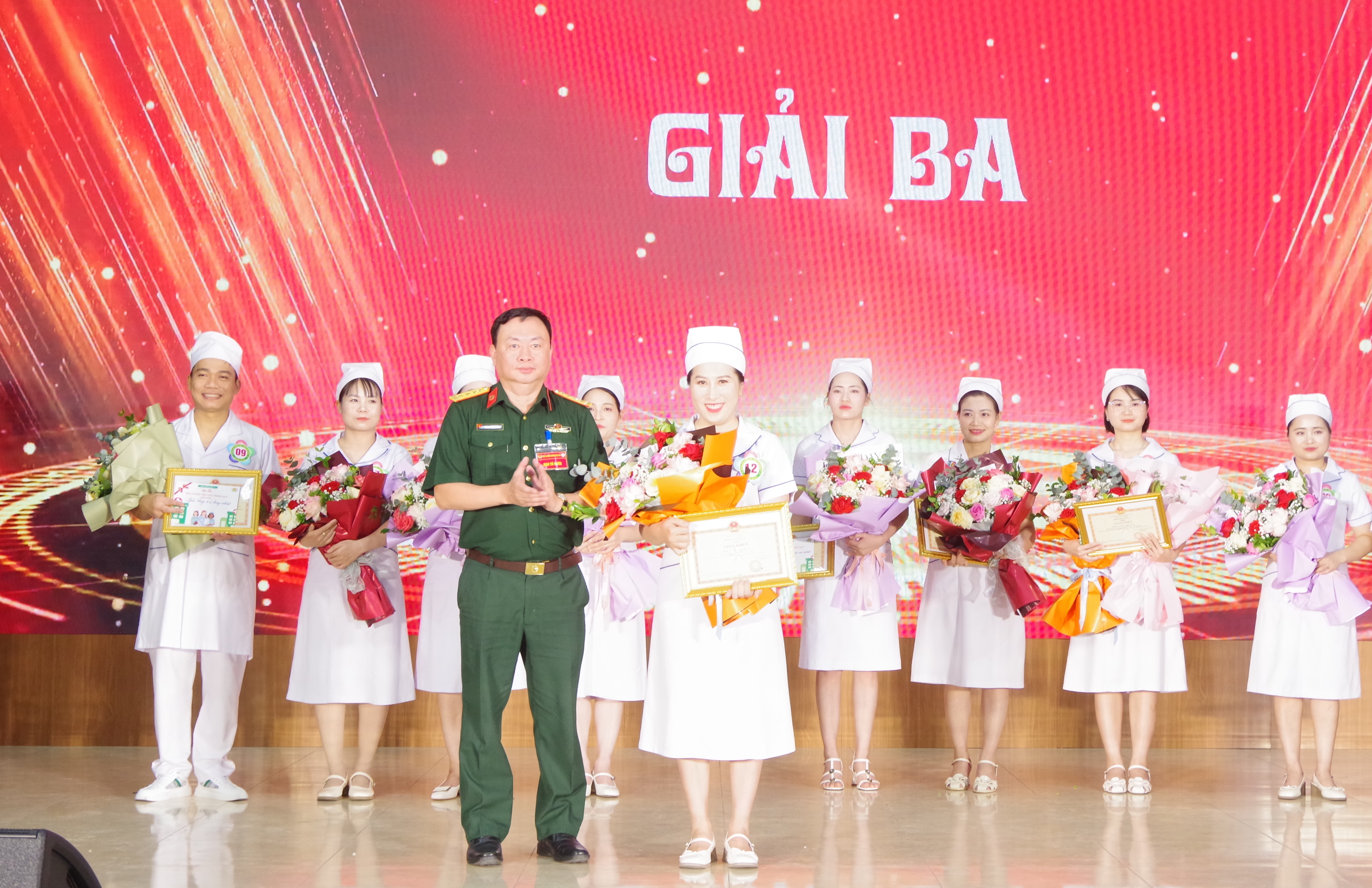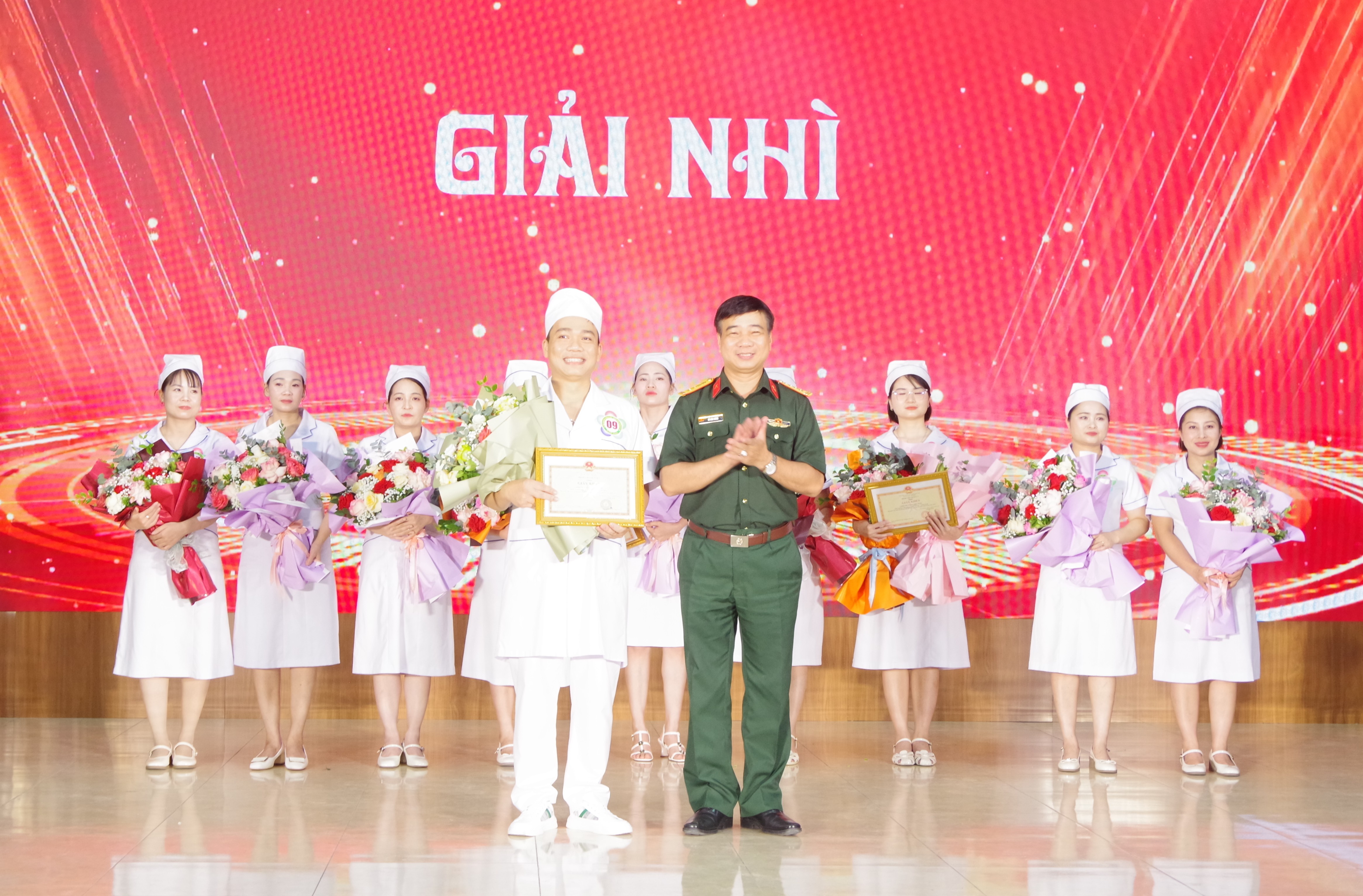 Đồng chí Đại tá Đỗ Đình Vương - Chính ủy Bệnh viện Quân y 7 trao giải Nhì toàn năng Hội thi Điều dưỡng viên giỏi, thanh lịch Bệnh viện năm 2025