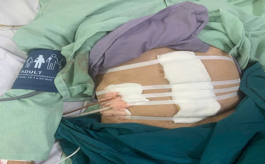Ngày 10/12/2025, bệnh nhân Đ.V.T, sinh năm 1927, trú tại TP. Hải Phòng, nhập viện trong tình trạng vô cùng nguy kịch: đau bụng dữ dội vùng thượng vị, bụng chướng, khó thở, kèm theo nhiều bệnh lý nền nặng nề như viêm phổi, suy thận, suy kiệt tuổi già. Bệnh nhân bị đau lưng do xẹp đốt sống, đã bơm xi măng được 4 ngày, bản thân có điện tim rung nhĩ, ngoại tâm thu thất. Với tuổi đời 98, tiên lượng ảnh hưởng đến tính mạng của bệnh nhân trong và sau phẫu thuật được đánh giá là có nguy cơ rất cao.