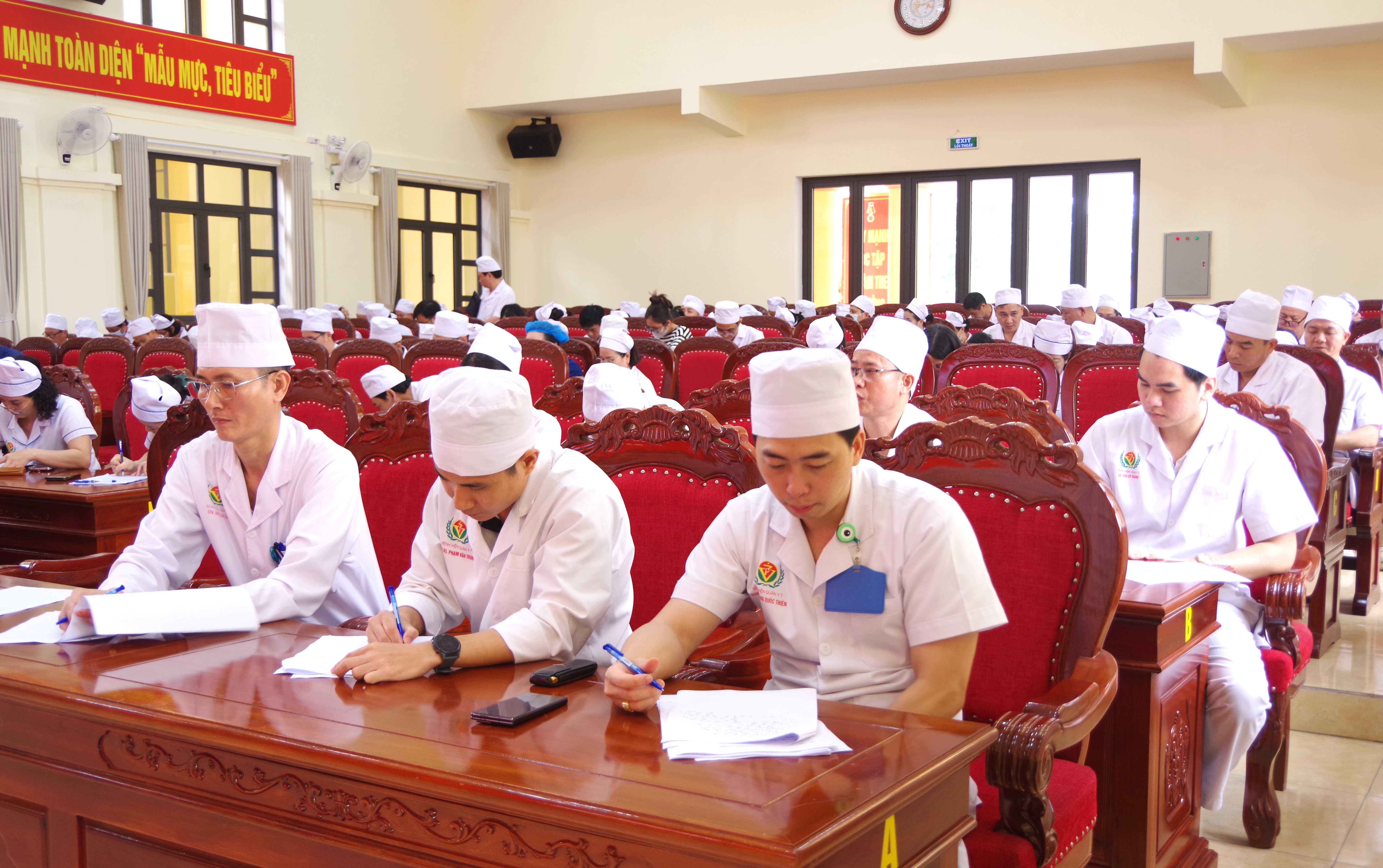 Sau khi kết thúc tập huấn, Bệnh viện đã tổ chức kiểm tra, đánh giá kết quả học tập nhằm đảm bảo các y bác sĩ, điều dưỡng viên nắm vững kiến thức, vận dụng thành thạo trong công tác khám, chữa bệnh.