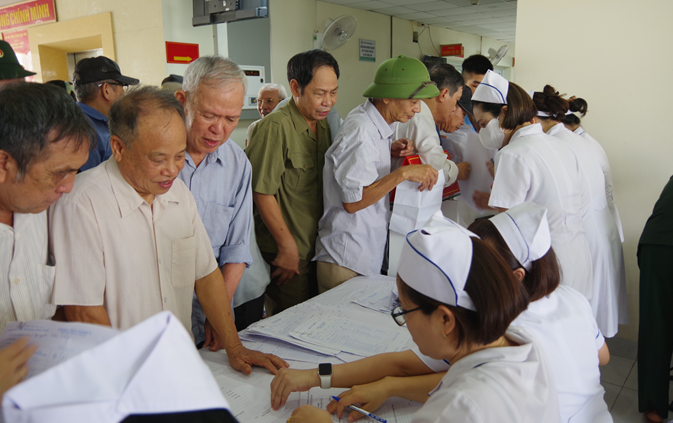 Các y, bác sĩ Bệnh viện Quân y 7 khám bệnh cho các đối tượng chính sách.