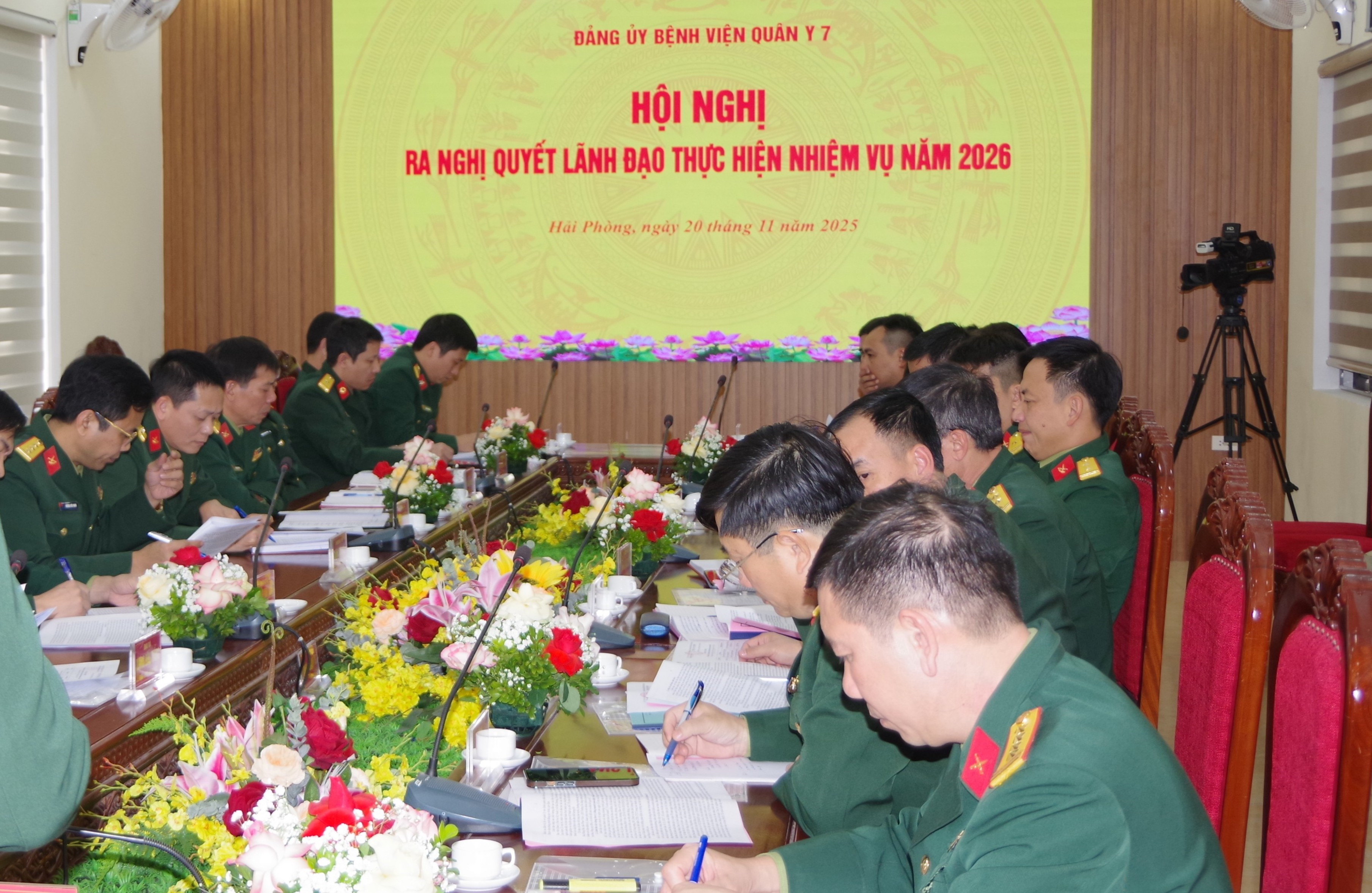 Chiều ngày 20/11/2025, Bệnh viện Quân y 7 (Cục Hậu cần - Kỹ thuật, Quân khu 3) tổ chức tổ chức hội nghị Đảng ủy Ra nghị quyết lãnh đạo thực hiện nhiệm vụ năm 2026 và Tổng kết thực hiện nhiệm vụ năm 2025.