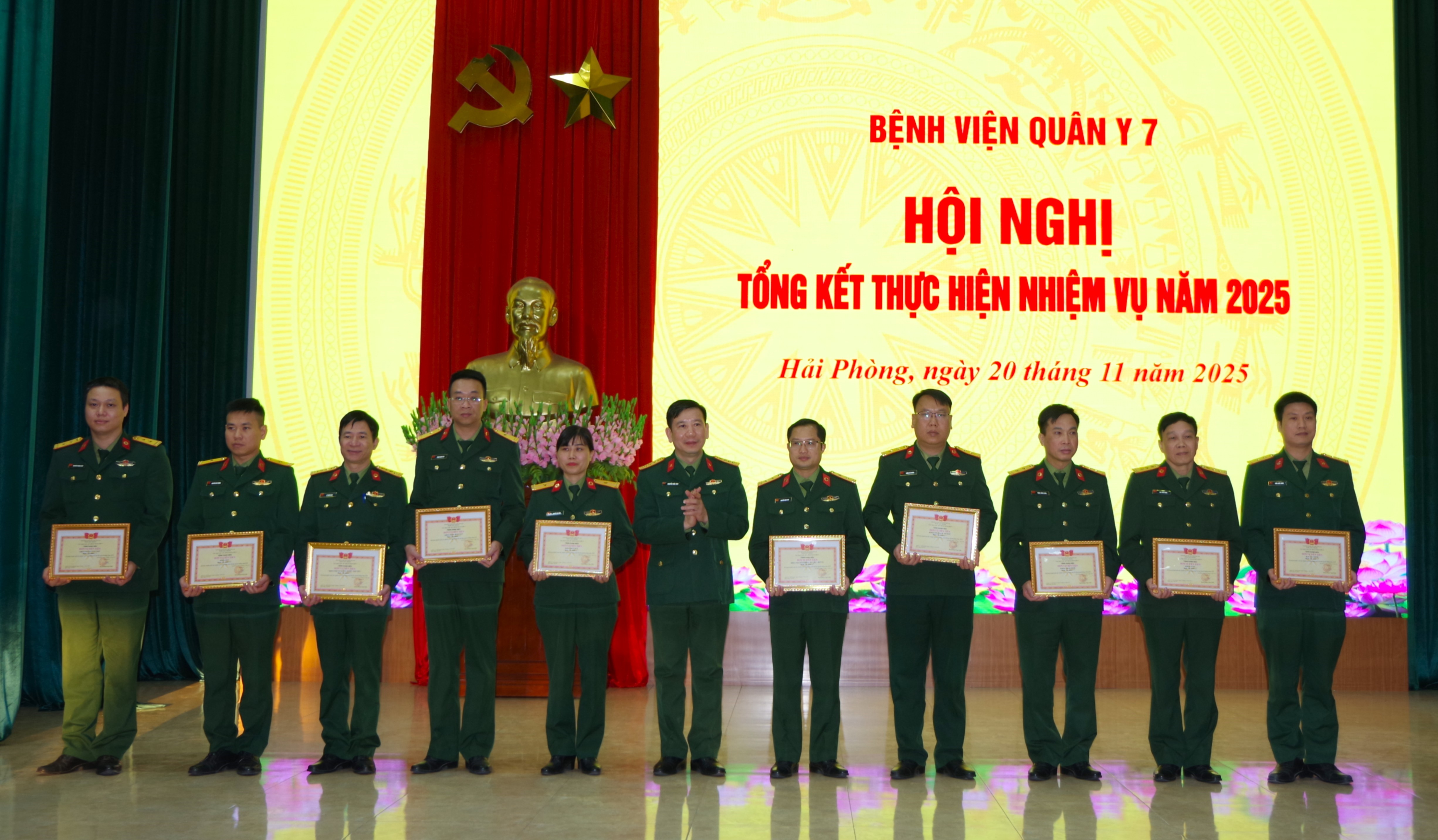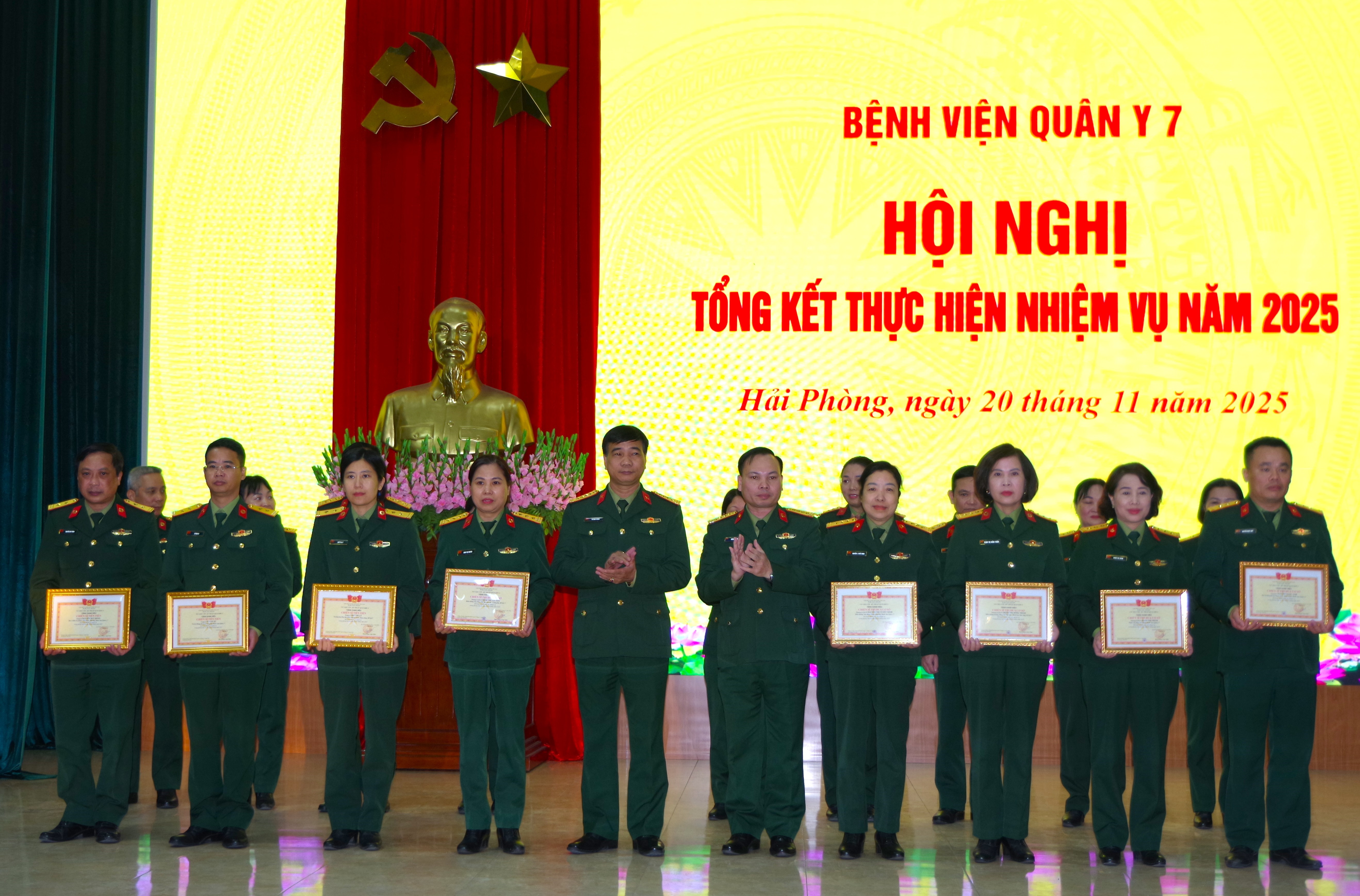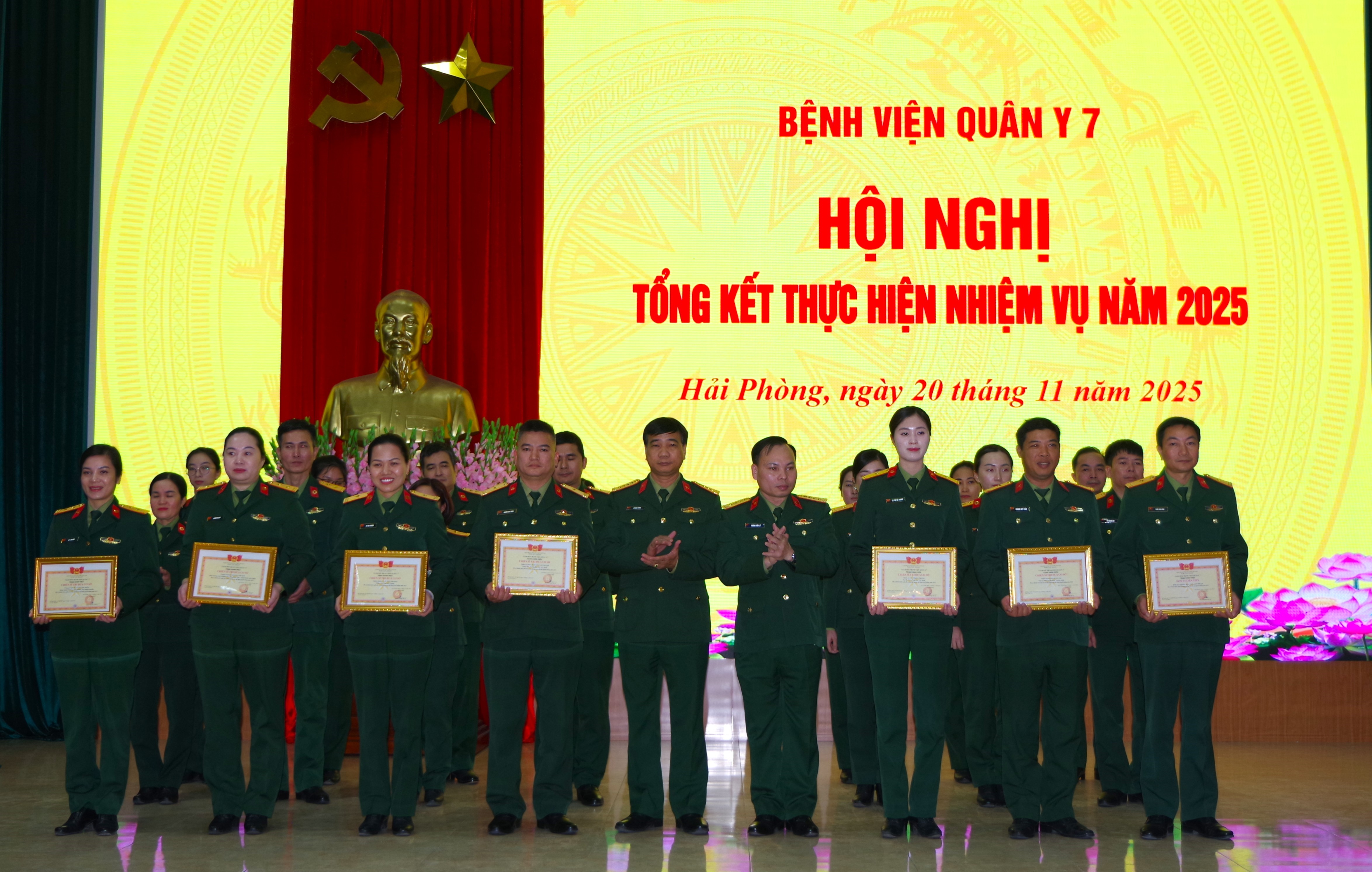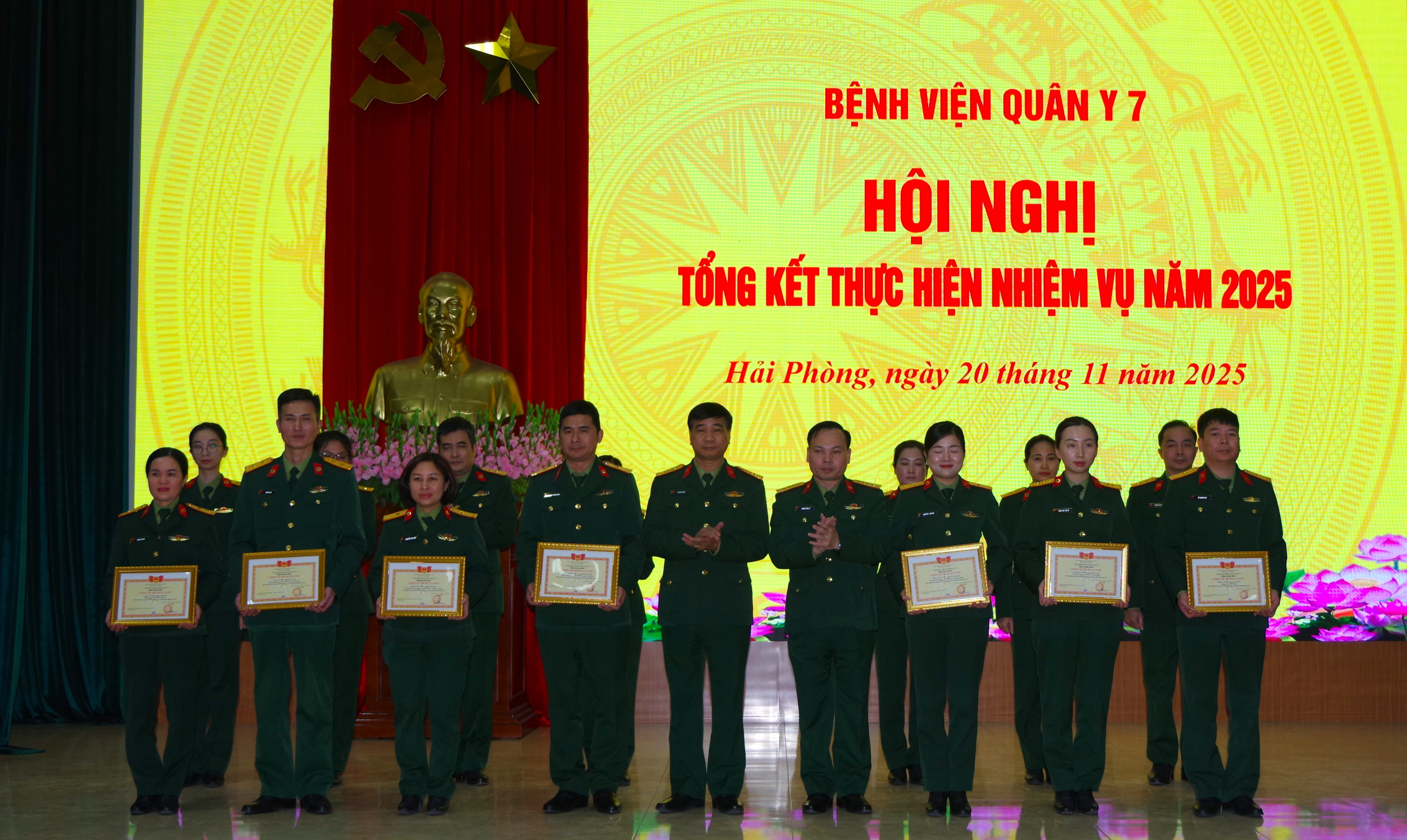 Tại hội nghị tổng kết, Thủ trưởng Cục Hậu cần - Kỹ thuật và chỉ huy Bệnh viện đã trao thưởng cho các tập thể, cá nhân có thành tích xuất sắc, tiêu biểu trong thực hiện phong trào thi đua quyết thắng năm 2025.