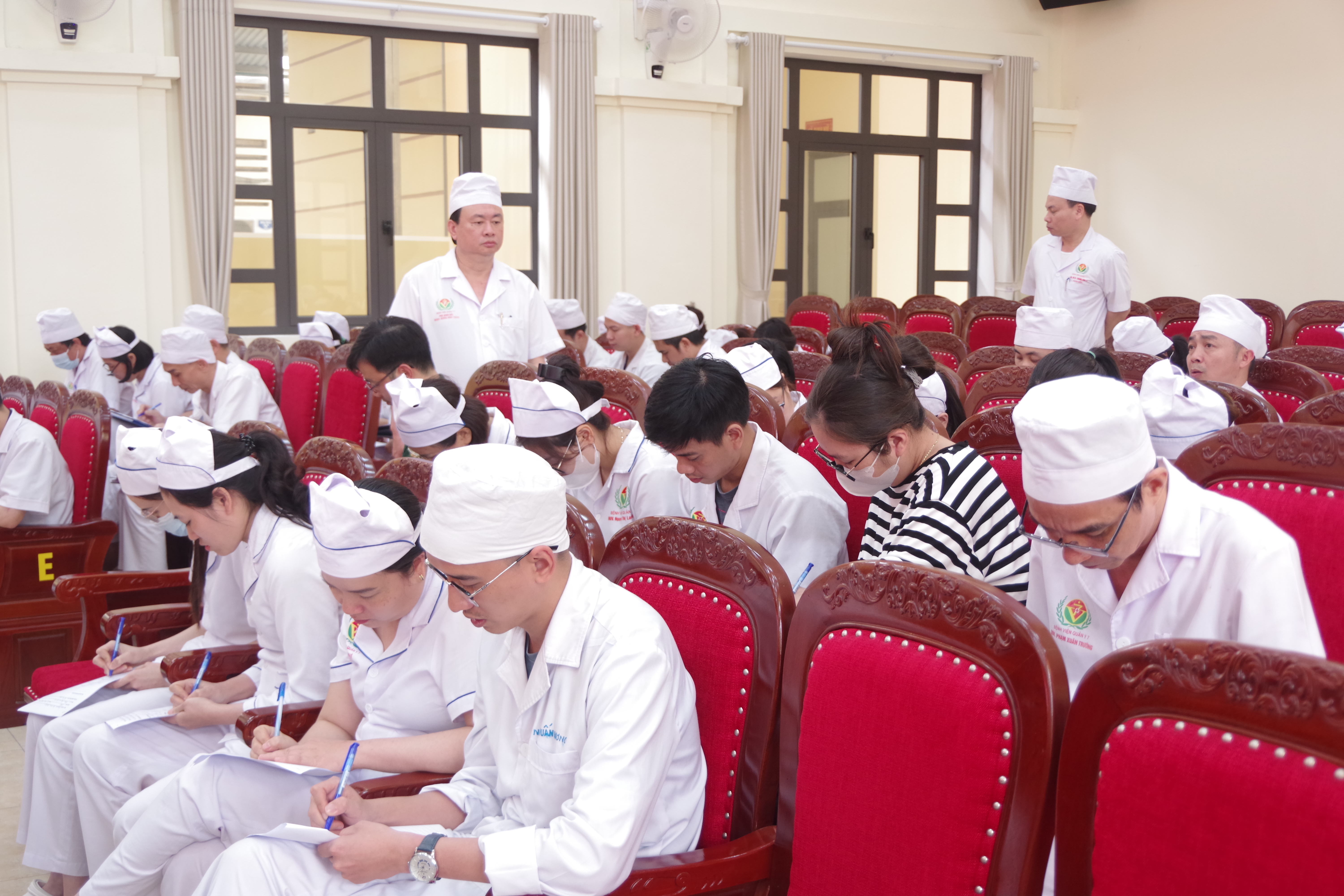Sau khi kết thúc tập huấn, Bệnh viện đã tổ chức kiểm tra, đánh giá kết quả học tập nhằm đảm bảo các y bác sĩ, điều dưỡng viên nắm vững kiến thức, vận dụng thành thạo trong công tác khám, chữa bệnh.